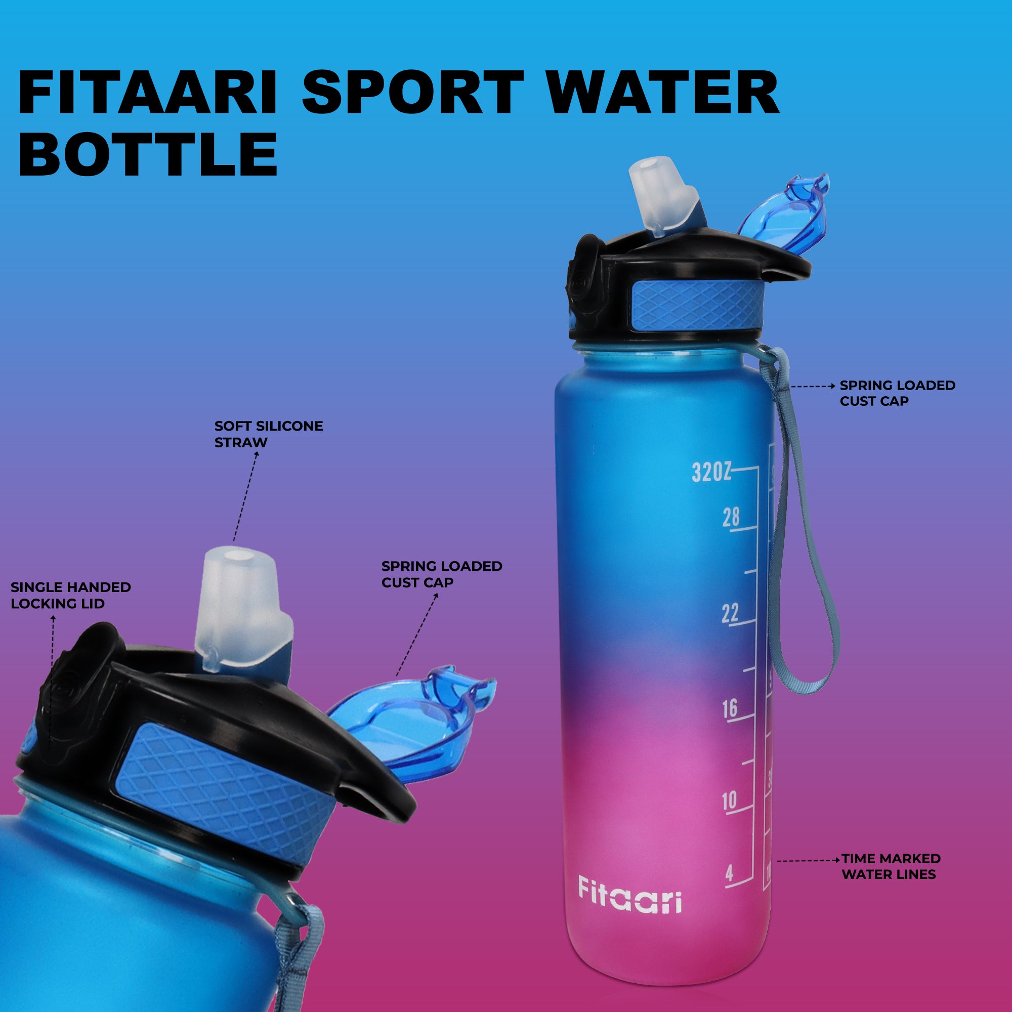 Fitaari Premium Motivational Water Bottle, 1 Litre