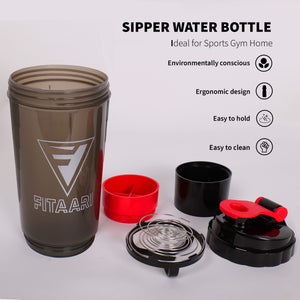 Fitaari Premium Shaker Bottle WIth Whey And Pill Container